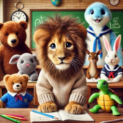 Petit Lion allait à l’école primaire de sa campagne : dix-huit élèves dans un même local, de la première à la sixième année du primaire, et ce, avec un seul professeur. Quand arriva l’âge de sa septième année primaire, il dut aller à la grande école de la ville, seul de son groupe, voyageant à bicyclette ou avec son père alors que celui-ci se rendait à son travail. Lors de la première dictée, il accumula cinquante fautes de français. Lors des tests de contrôle de la géographie et de l’histoire de son pays, Petit Lion ne se souvenait jamais de la matière étudiée : ces deux matières étaient vraiment trop abstraites pour lui. Le professeur, une dame d’un certain âge, était très sévère et exigeante. De l’avis de Petit Lion, la mise en punition semblait facile pour cette dame, mais plutôt exagérée lorsque les leçons n’étaient pas sues. La maman de Petit Lion l’assistait énormément lors des devoirs et de l’étude des leçons, car il ne savait pas comment s’y prendre. Son école de campagne ne lui avait pas vraiment appris comme effectuer ce travail.